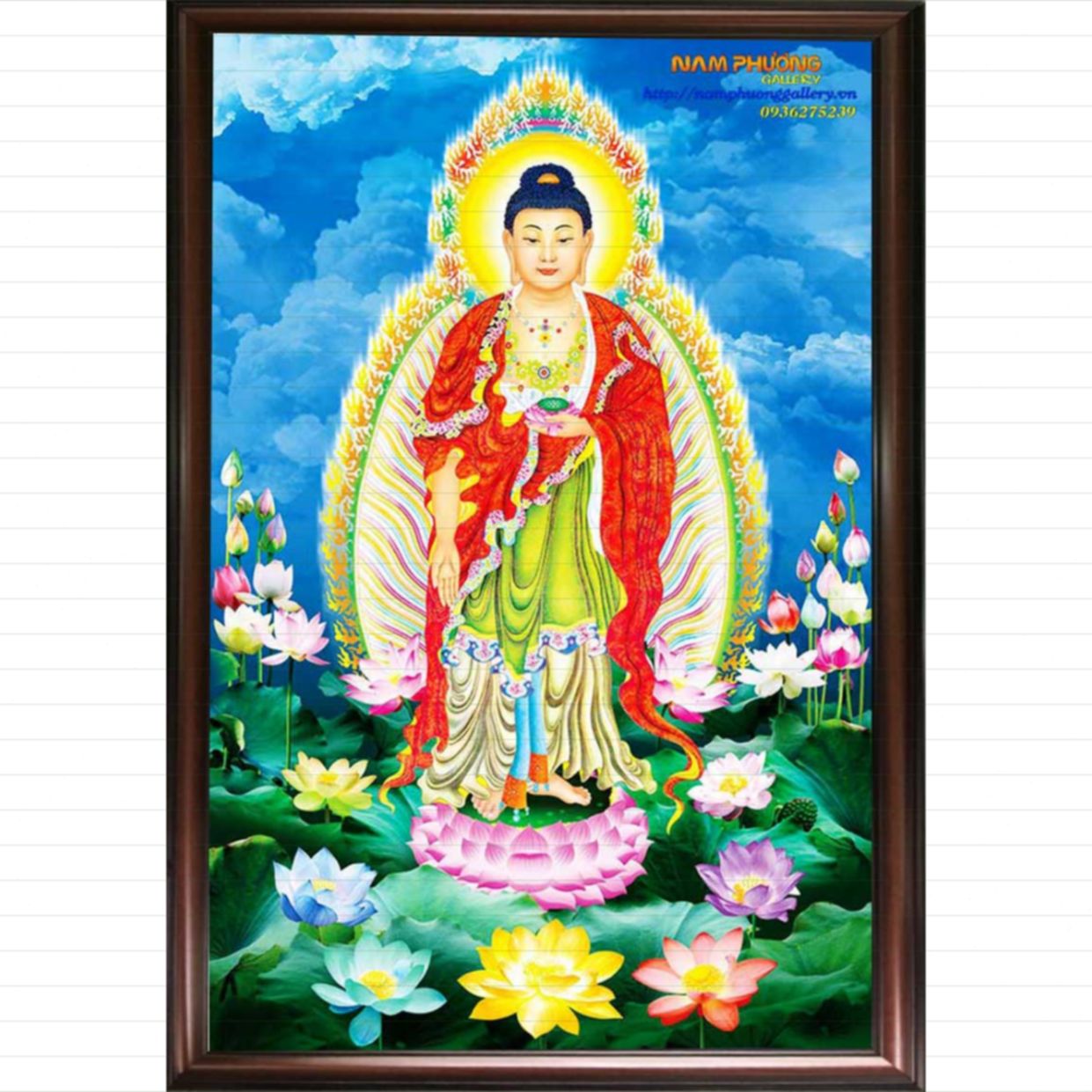 Tranh Phật A Di Đà đứng trên hoa sen TP018 phòng ngủ và cầu thang link web . Những tấm tranh phong cảnh đẹp sẽ góp phần làm không gian thêm nổi bật và sinh động đấu giá . Đối với việc trang trí nội thất ở căn hộ hiện đại không thể thiếu vắng những các bức tranh treo phòng khách đẹp.
