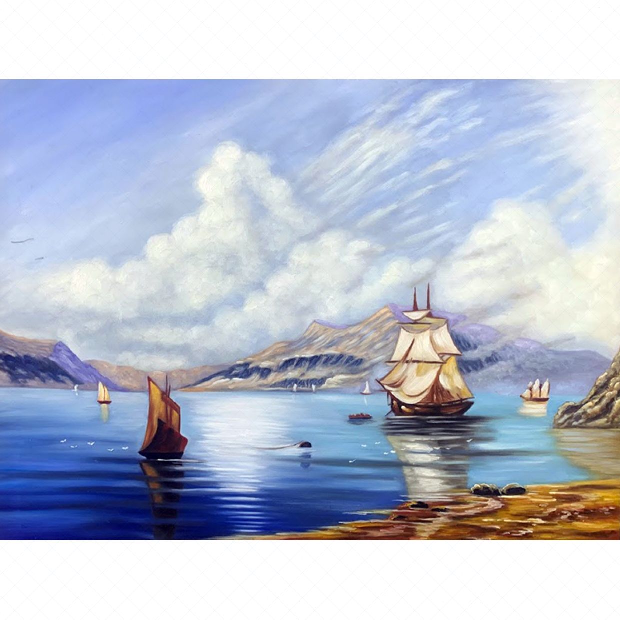 Tranh sơn dầu thuyền buồn treo tường